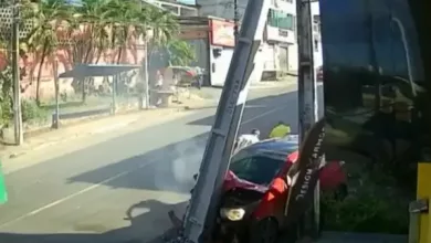 VÍDEO: Carro bate em poste e homens saem pela porta do carona antes de veículo pegar fogo em Salvador