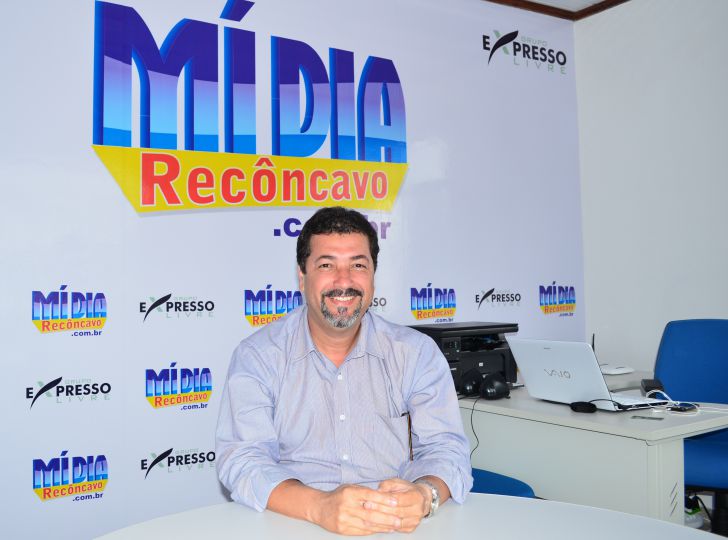 Prefeito Roque Isquem, na redação do Mídia Recôncavo