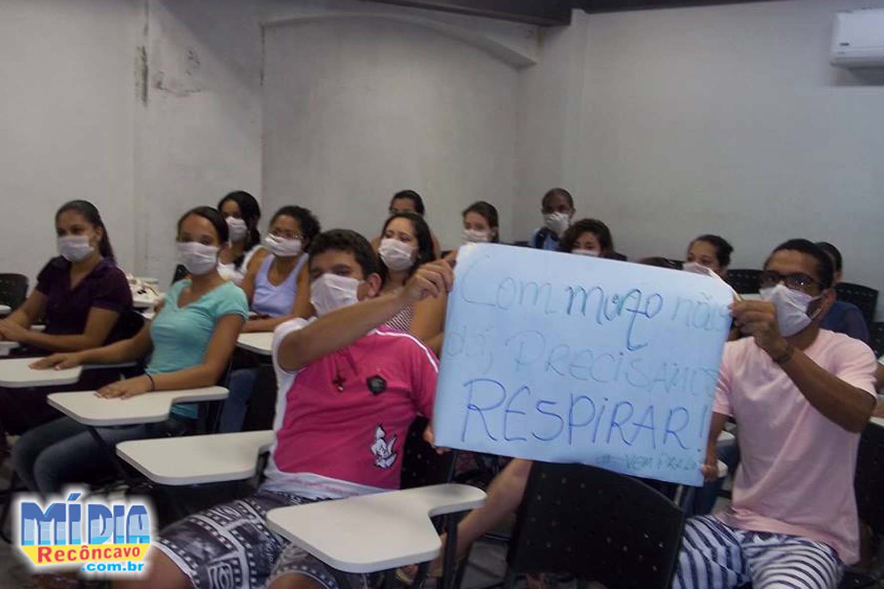 Alunos do CAHL (Centro de Artes, Humanidades e Letras), da Universidade Federal do Recôncavo da Bahia, em Cachoeira, estão sendo obrigados a assistir às aulas usando máscaras, para se proteger do mofo presente nas paredes da sala. Segundo Deise Peixoto, estudante do curso de Serviço Social, a sensação é horrível. " Imagine como se sente um discente que está num ambiente em que se defende a garantia dos direitos de forma igualitária, no caso do curso de Serviço Social, e se vê numa situação dessa de total violação de seu direito enquanto estudante e cidadão", relata.