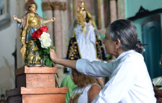 Vestida de branco e carregando rosas vermelhas, Maria Bethânia apareceu pelas ruas da cidade de Santo Amaro, por volta do meio-dia, nesse sábado (02) e foi direto para a igreja onde as imagens católicas são arrumadas, antes de seguirem para a Procissão de Nossa Senhora da Purificação. A cantora foi enfeitar o andor de Santa Bárbara, sua santa de devoção, que saiu carregada pela cidade, pela tarde. Essa manifestação religiosa marca o final dos festejos em torno de Nossa Senhora da Purificação, que acontece desde o dia 25 de janeiro, durante todos os anos, na cidade do recôncavo baiano.