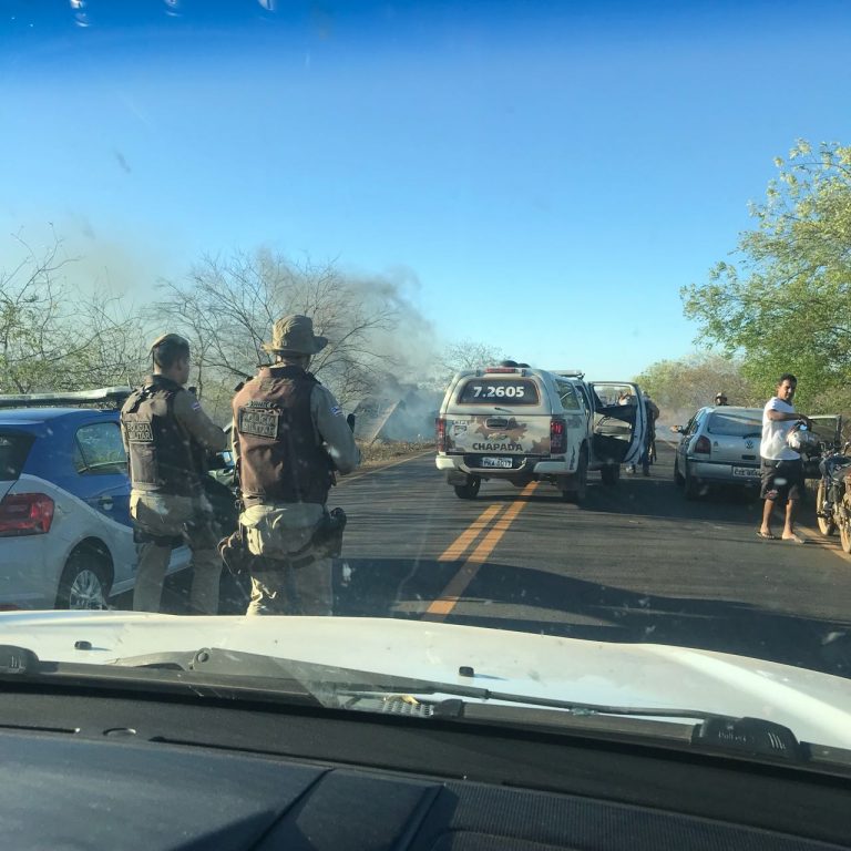 PÂNICO NA ESTRADA: Bandidos interceptam e explodem carro-forte na Chapada Diamantina