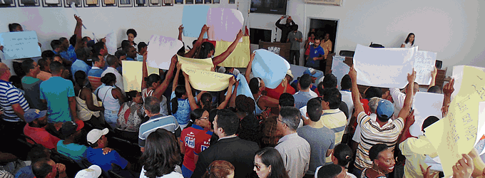 Apesar do protesto de quem estava acompanhando a sessão extraordinária, a Câmara de Vereadores de Santo Antônio de Jesus, aprovou na manhã desta última quarta-feira (29), o aumento do Imposto Predial Territorial Urbano (IPTU). Foram cerca de três horas de discussão acerca do projeto que prevê um reajuste de até 50%. A Sessão precisou ser parada por vários momentos para tentar acalmar os ânimos. Dos 13 vereadores presentes, apenas quatro foram contra o aumento do IPTU. São eles: Délcio Mascarenhas (PP), Chico de Dega (DEM), Pedro de Teca (PSD) e Drº Francisco (PPS).