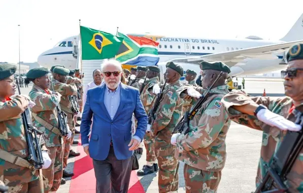 O presidente Luiz Inácio Lula da Silva (PT) chegou a Joanesburgo, na África do Sul, às 10h do horário local (5h no horário de Brasília). Ele participa, de terça (22) até quinta-feira (24), da 15ª Cúpula do Brics.