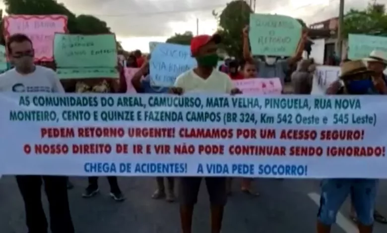 Moradores do povoado de Areal, em Amélia Rodrigues, cidade a cerca de 100 quilômetros de Salvador, interditaram as duas faixas de um trecho da BR-324, na manhã desta segunda-feira (21). O grupo pede que seja construído um retorno para facilitar o acesso à localidade.
